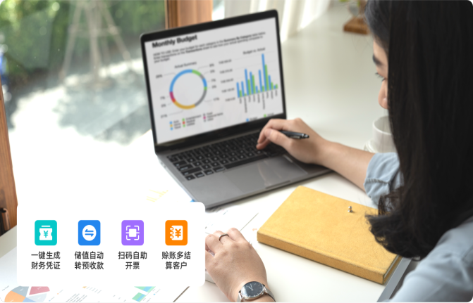 零售单据一键生成凭证,会员储值自动生成预收款,扫码自助开发票,会员赊销回款闭环管理