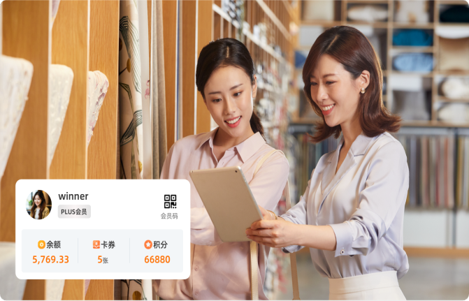 会员等级、储值、积分、优惠券、礼品卡券线上线下互通,各渠道会员权益获取及权益消耗实时共享,通过小程序和微信会员卡随时随地查看