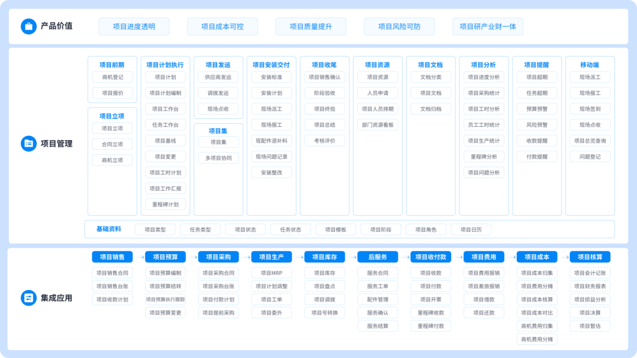 基于PMI管理思想,打通项目各维度研、产、供、销、服、财,精细化项目过程管理