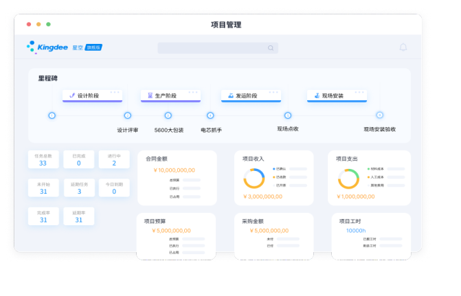 项目云,以业务流程驱动、交付物驱动、填报式驱动实现项目进度与业务、财务紧密关联,能实现数据共享、实时沟通和远程协作,业务闭环,实现多角度,多维度的任务预警、项目预警、系统预警,将信息驱动变化为主动式协同,提升项目管理效率。实现项目进度、成本、财务、过程、质量、效率的精细化管理